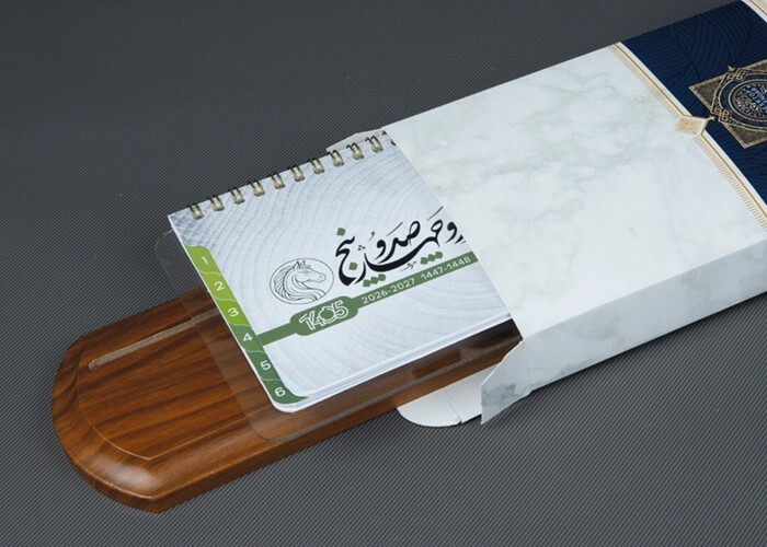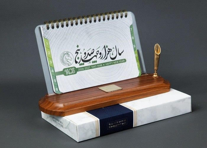 تقویم شمسی رومیزی دارای شیک با طراحی مدرن و کیفیت بالا و تضمینی گزینهای ایدهآل برای میز کار یا هدیه های تبلیغاتی .