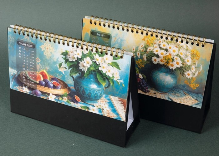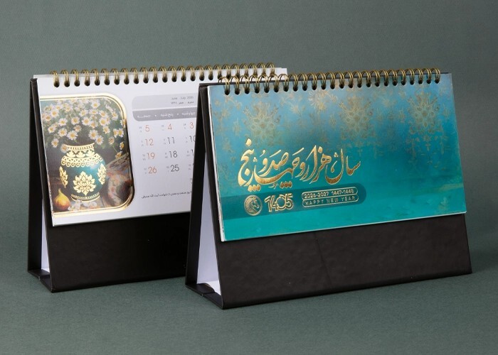 تقویم شمسی رومیزی دارای شیک با طراحی مدرن و کیفیت بالا و تضمینی گزینه‌ای ایده‌آل برای میز کار یا هدیه‌ های تبلیغاتی .