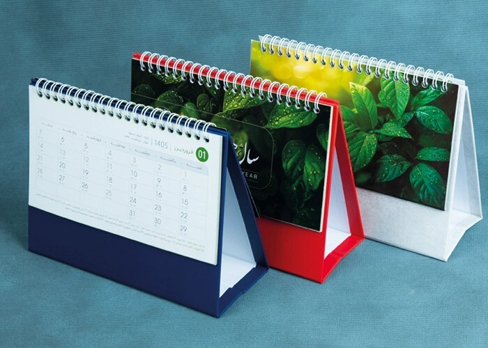 تقویم شمسی رومیزی دارای شیک با طراحی مدرن و کیفیت بالا و تضمینی گزینهای ایدهآل برای میز کار یا هدیه های تبلیغاتی .