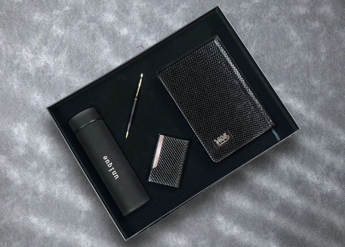 اقلام ست : فلاسک مات، سررسید رقعی ،جاکارتی ، خودکار و به همراه بگ شاپ طلاکوب دار