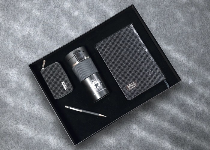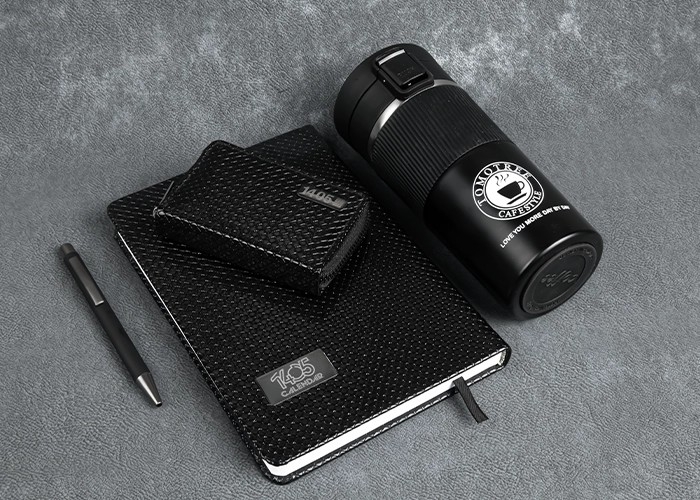 اقلام ست : تراول ماگ،سررسید رقعی،جاکارتی کیفی،خودکار مات به همراه بگ شاپ طلاکوب دار