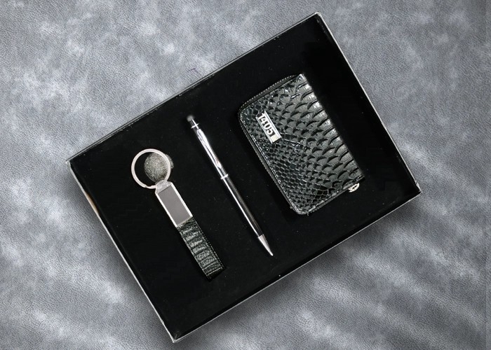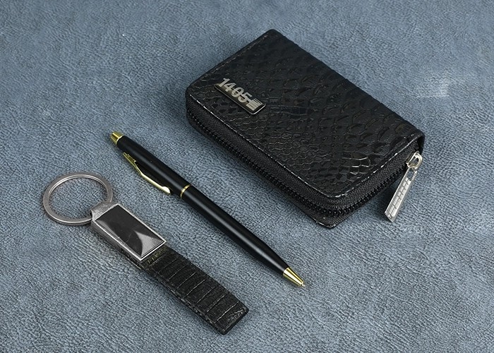 اقلام ست :جاکارتی کیفی،جاکلیدی ،خودکار به همراه بگ شاپ طلاکوب دار
