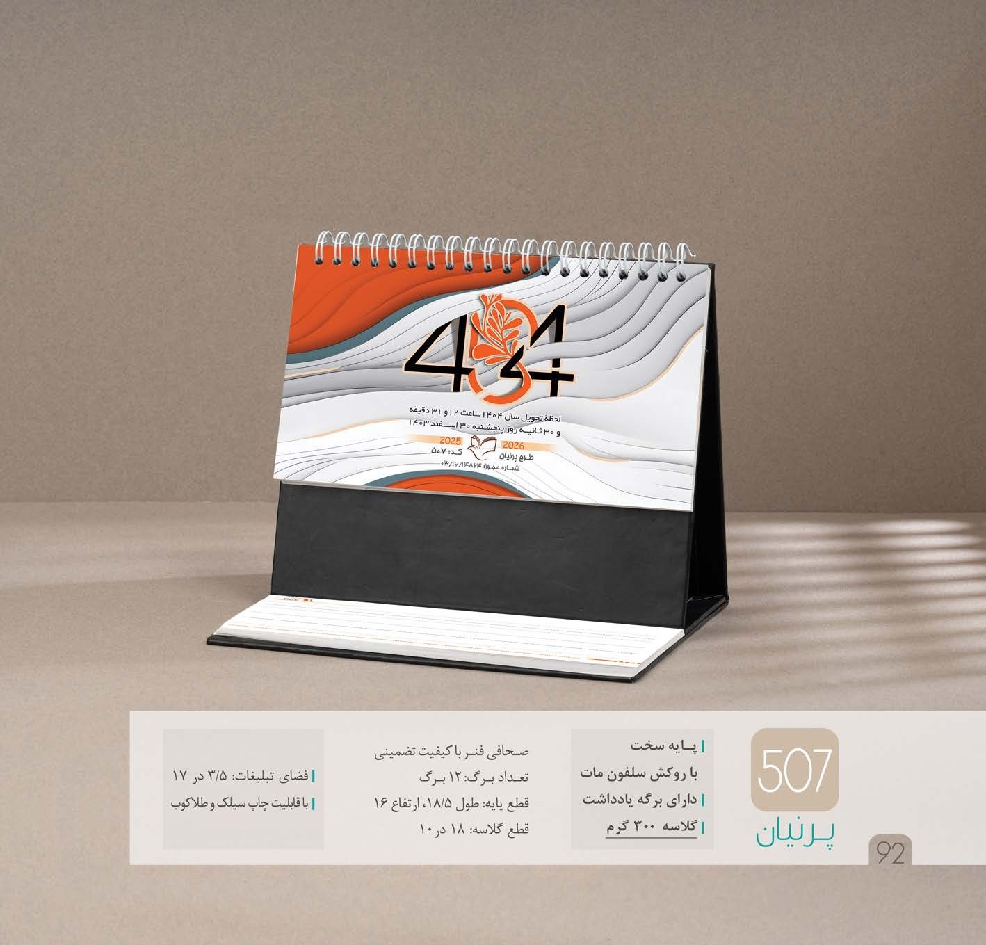 تقویم شمسی رومیزی شیک با طراحی مدرن و کیفیت بالا و تضمینی گزینهای ایدهآل برای میز کار یا هدیه های تبلیغاتی .