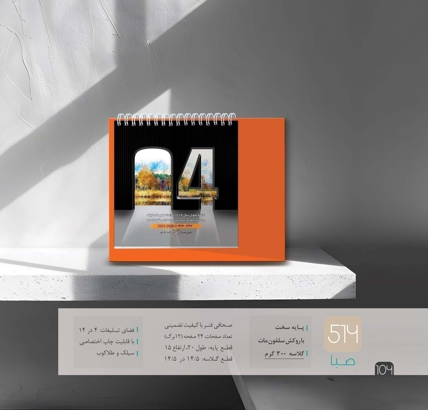 تقویم شمسی رومیزی شیک با طراحی مدرن و کیفیت بالا و تضمینی گزینهای ایدهآل برای میز کار یا هدیه های تبلیغاتی .