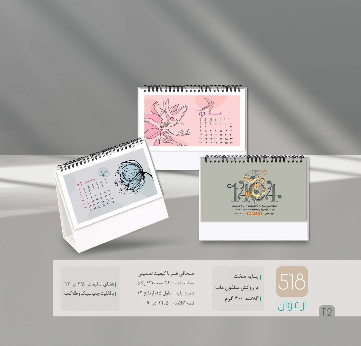 تقویم رومیزی 1404 مدل ارغوان fd-518