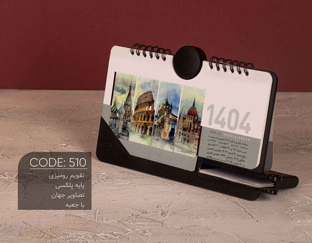 تقویم شمسی رومیزی دارای شیک با طراحی مدرن و کیفیت بالا و تضمینی گزینهای ایدهآل برای میز کار یا هدیه های تبلیغاتی .