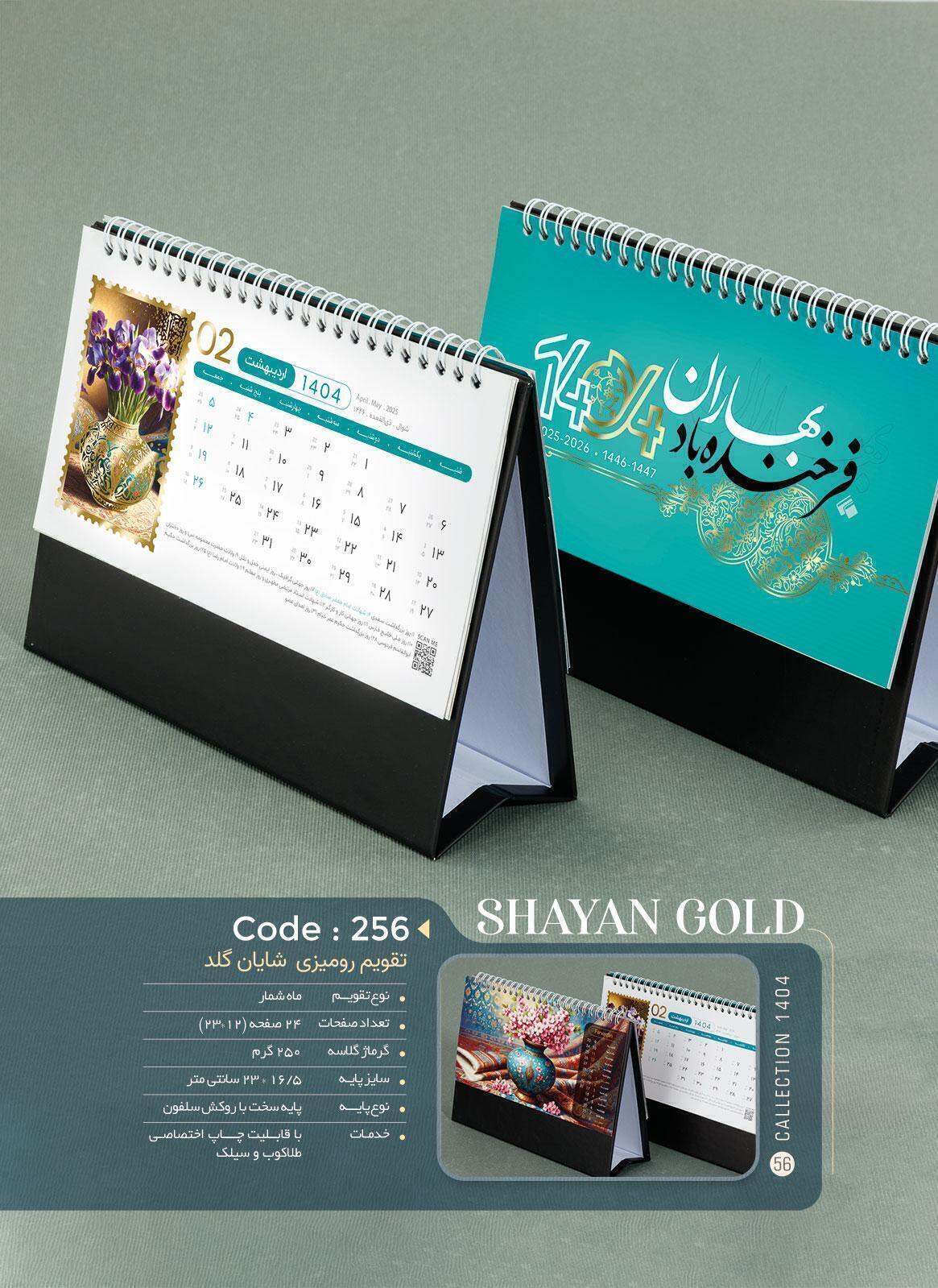 تقویم رومیزی 1404 پایه سخت با روکش سلفون مدل شایان گلد ars-256