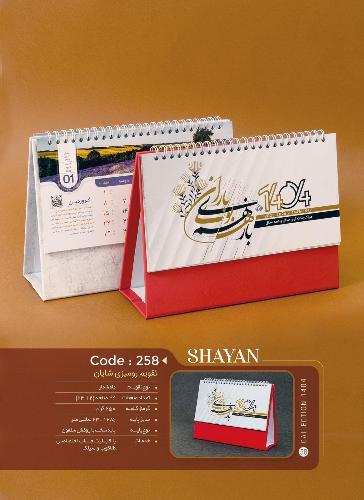 تقویم رومیزی 1404 پایه سخت با روکش سلفون مدل شایان ars-258