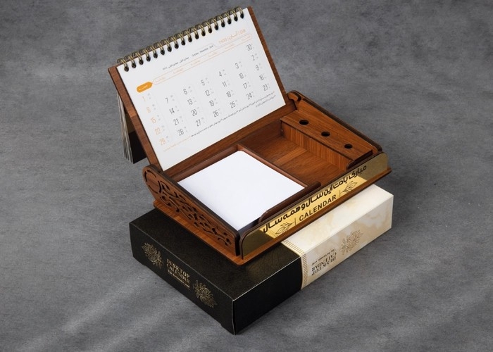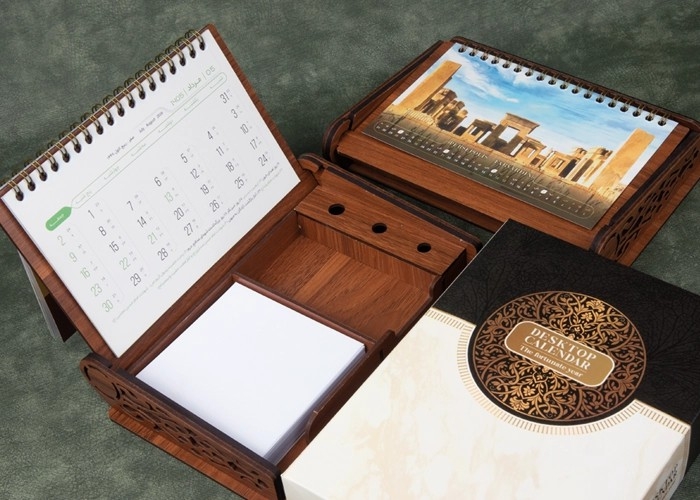 تقویم شمسی رومیزی دارای شیک با طراحی مدرن و کیفیت بالا و تضمینی گزینهای ایدهآل برای میز کار یا هدیه های تبلیغاتی .