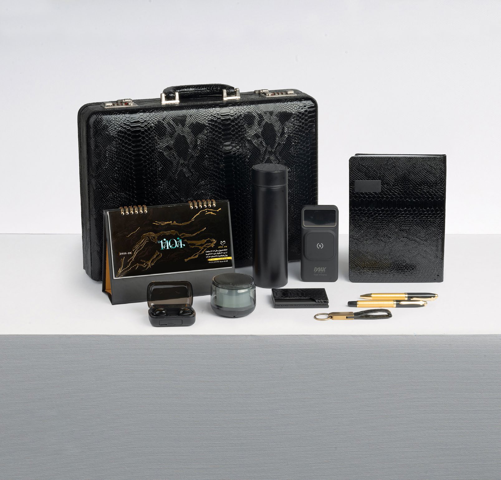 محتویات : کیف سامسونت ، سررسید وزیری چرم نفیس ، تقویم رومیزی کهربا ، فلاسک ، ایرپاد ، اسپیکر ، پاور بانک وایرلس ، خودکار فلزی نفیس ، روان نویس فلزی نفیس ، جاکارتی فلزی ، جاکلیدی چرم مرغوب