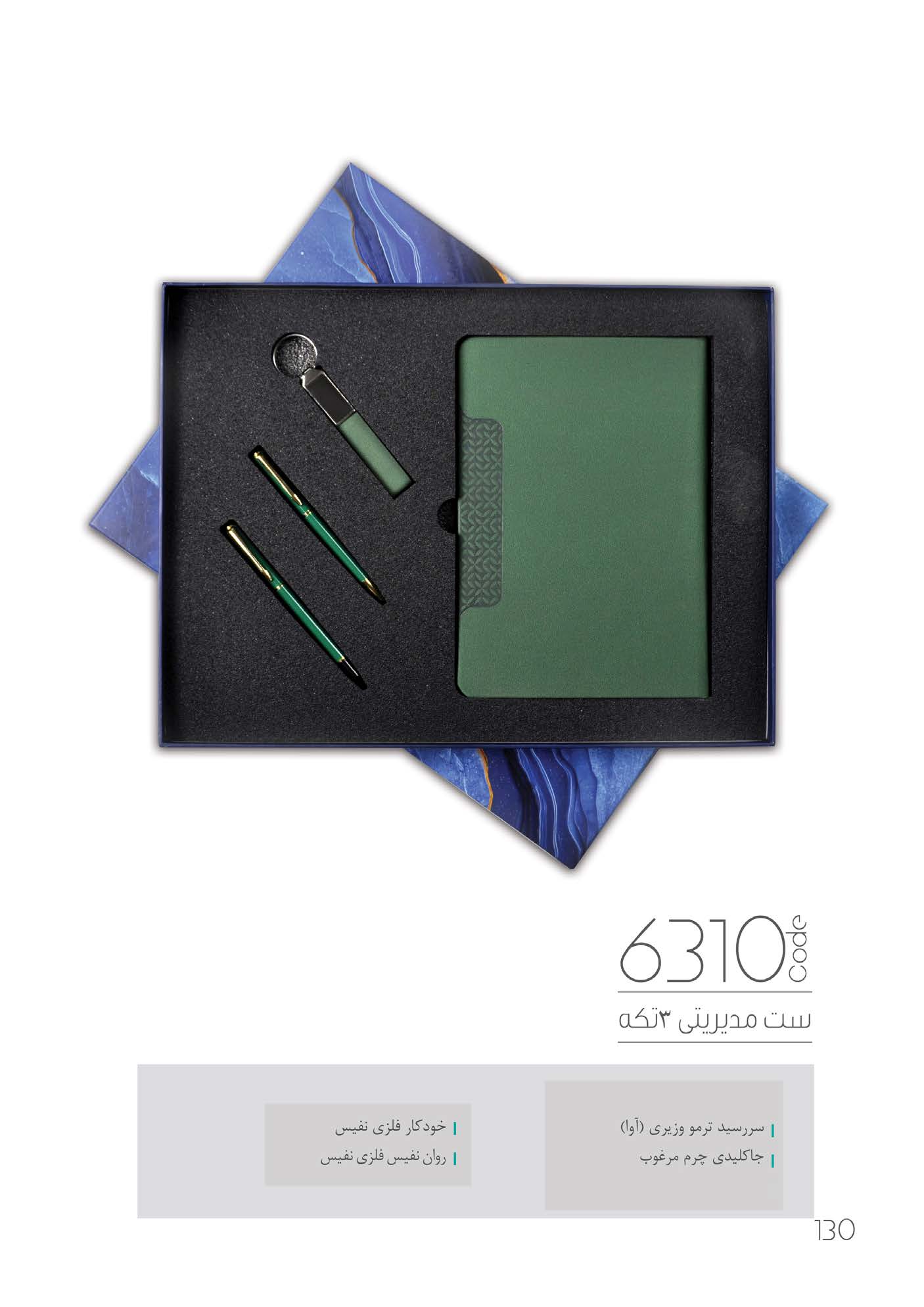 سررسید ترمو وزیری،جا کلیدی چرم،خودکار فلزی ، روان نویس فلزی