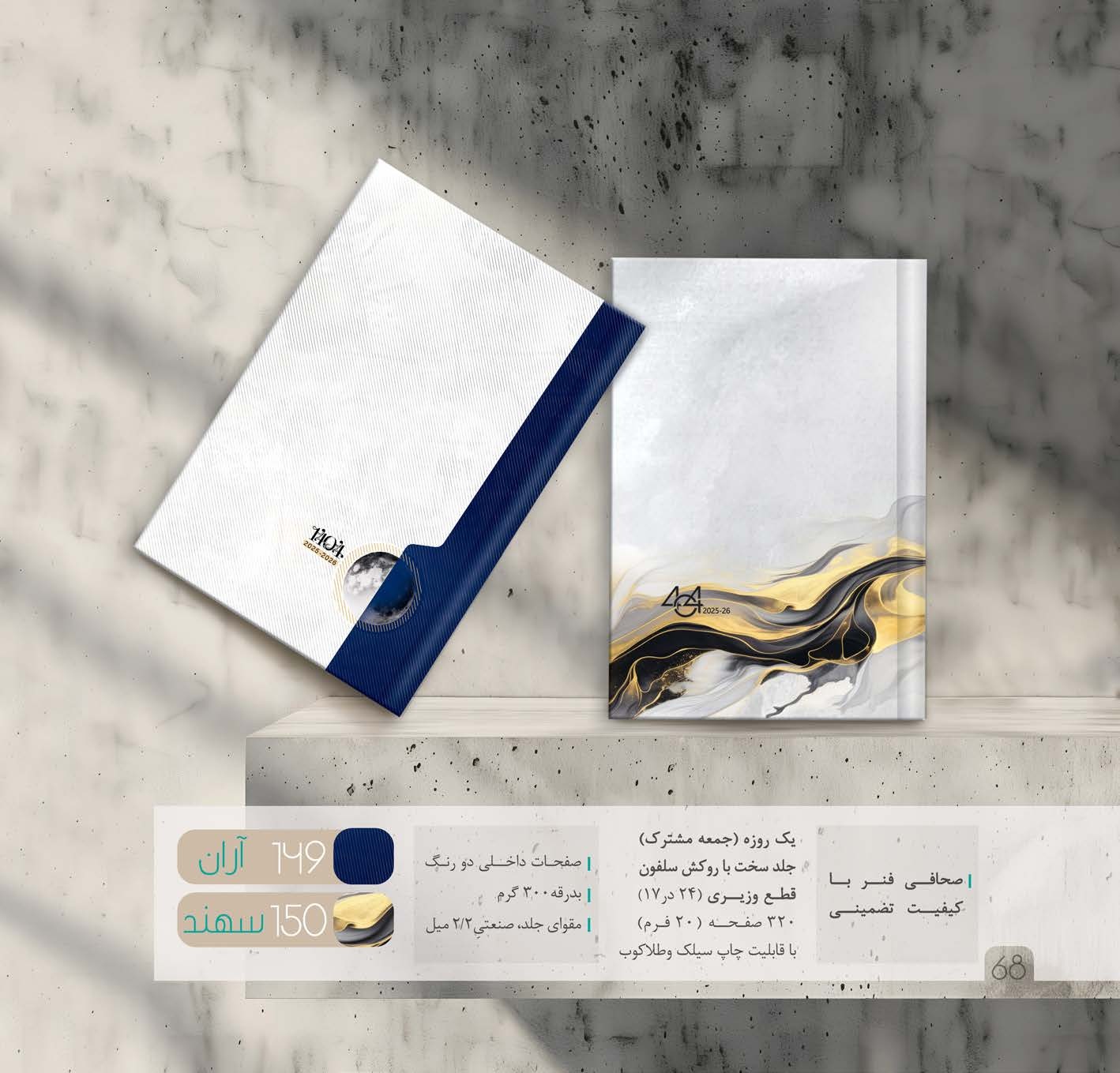 شیک و کاربردی با طراحی جذاب و کیفیت عالی! سررسیدهای ما انتخابی مناسب برای برنامهریزی روزانه، یادداشتبرداری و هدیهای خاص هستند. بهترین قیمت و ارسال سریع به سراسر کشور. همین حالا سفارش دهید!