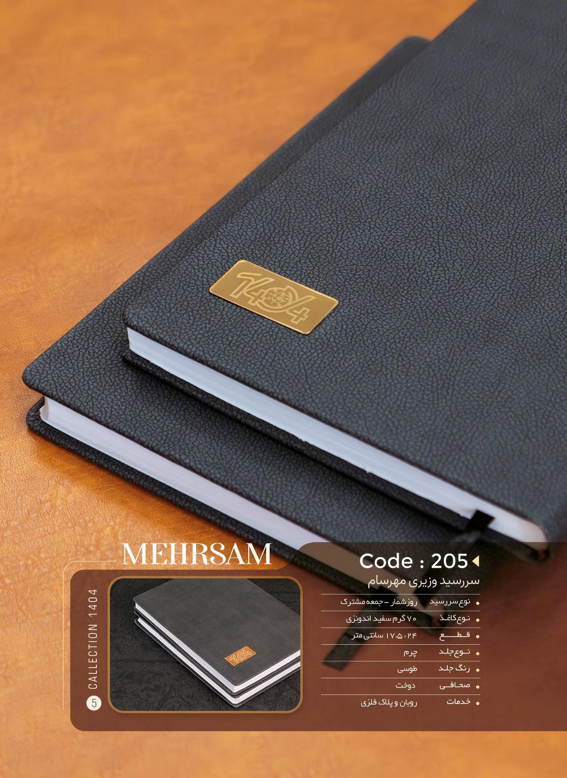 سررسید چرم وزیری 1404 جمعه مشترک مدل مهرسام ars-205