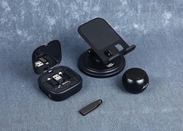 اقلام ست :اسپیکر گرد، کابل چند کاره ، هولدر ،فلش 32 گیگ به همراه بگ شاپ طلاکوب دار